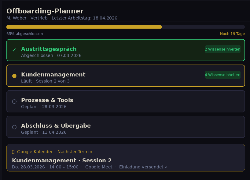 Offboarding-Planner.Kein Wissen geht verloren.